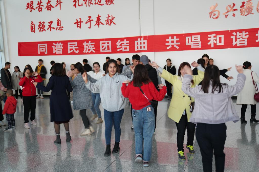 舞蹈比赛环节,大家沉浸在一片欢乐的海洋中,奏响了民族团结一家亲的欢歌。整齐的步伐、欢快的节奏、爽朗的笑声透露出师生对大美新疆的热爱和浓浓的团结情。