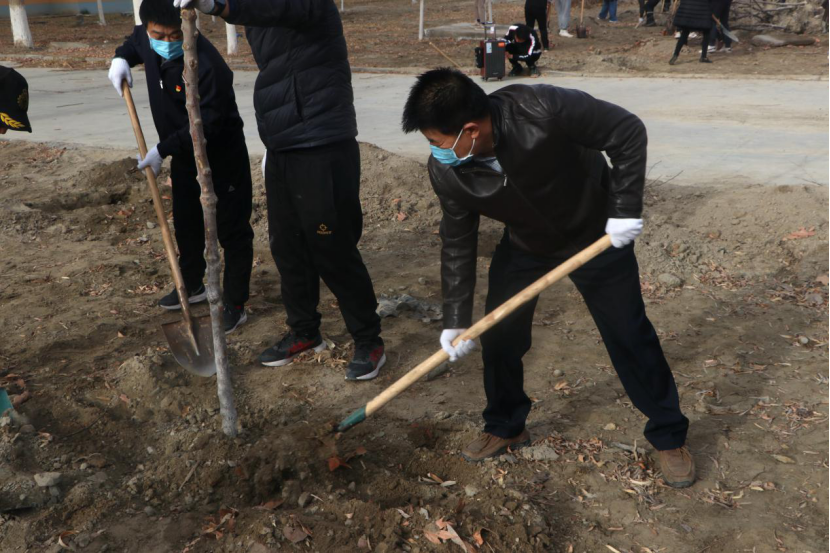 看见一排排整齐的树苗,农学院植物保护2020级2班李勇满满的幸福感,“春风十里不及一抹绿色,愿地球常绿,空气常新,天空更蓝。参加这次活动不仅绿化了校园,也让我们增强了保护环境、美化环境的意识。今后要从身边点滴做起,以实际行动践行绿色发展理念,积极投身到生态文明建设中去,为建设美丽塔大、美丽兵团、美丽新疆、美丽中国贡献自己的应有力量。”