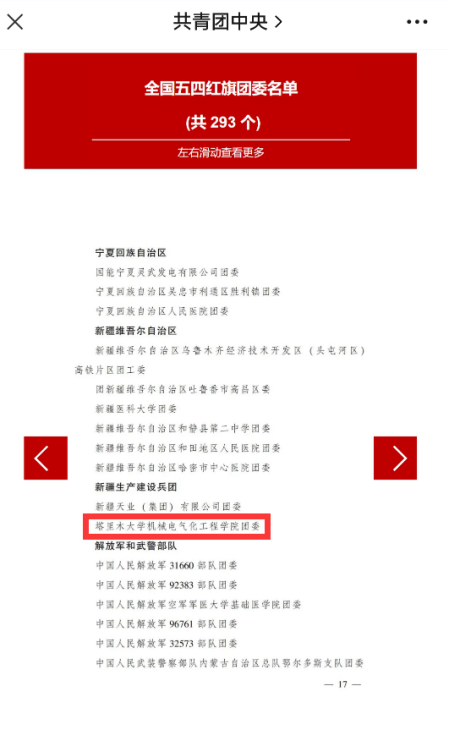 4月13日,据共青团中央关于表彰全国五四红旗团委(团支部)、全国优秀共青团员、全国优秀共青团干部的决定,我校机械电气化工程学院团委被授予“全国五四红旗团委”称号。