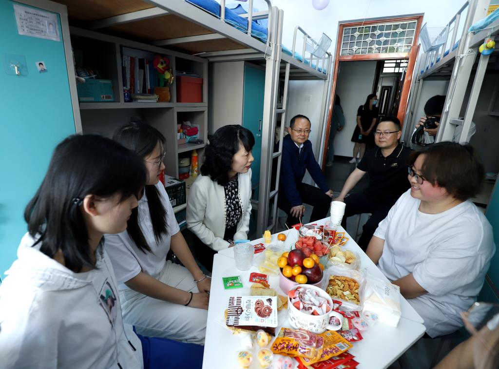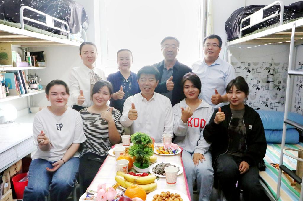 赵光辉先后来到东区3号学生公寓217宿舍、15号学生公寓218宿舍,看望慰问交友学生,向她们致以节日的祝贺和诚挚的问候,与同学们围坐在一起亲切交谈,详细了解她们的学习生活情况,并向她们赠送了书籍。