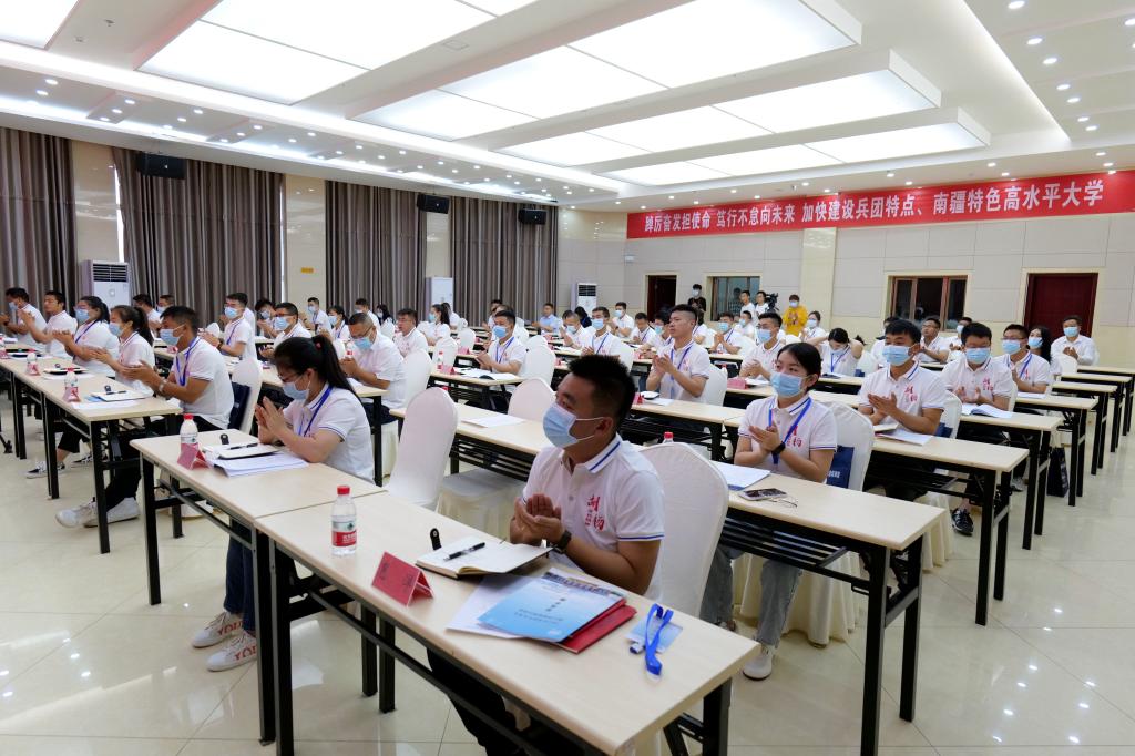 参训学员代表、第三师四十一团草湖镇刘伟楠表态发言说:“对于我们每个人的成长来说,参加这次培训班是一次难得的学习、锻炼、交流、提高的机会。我们会珍惜机会,认真学习,把学习成果转化为推动工作的强大动力,坚定信念,锤炼品格,与时俱进,开拓创新,为推动兵团和南疆高质量发展,贡献青春智慧和力量。”