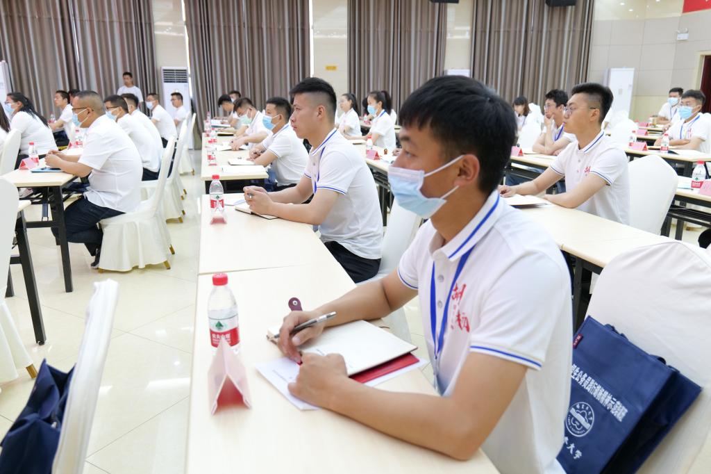 5月16日,党委书记赵光辉为2022年内招生公务员践行胡杨精神示范培训班讲授开班第一课。来自南疆基层团场的49名公务员学员聆听了讲座。讲座在胡杨干部培训中心二楼报告厅举办。