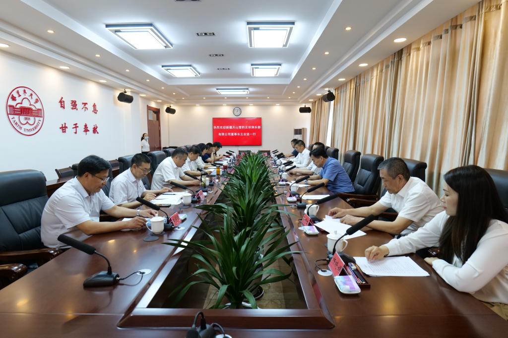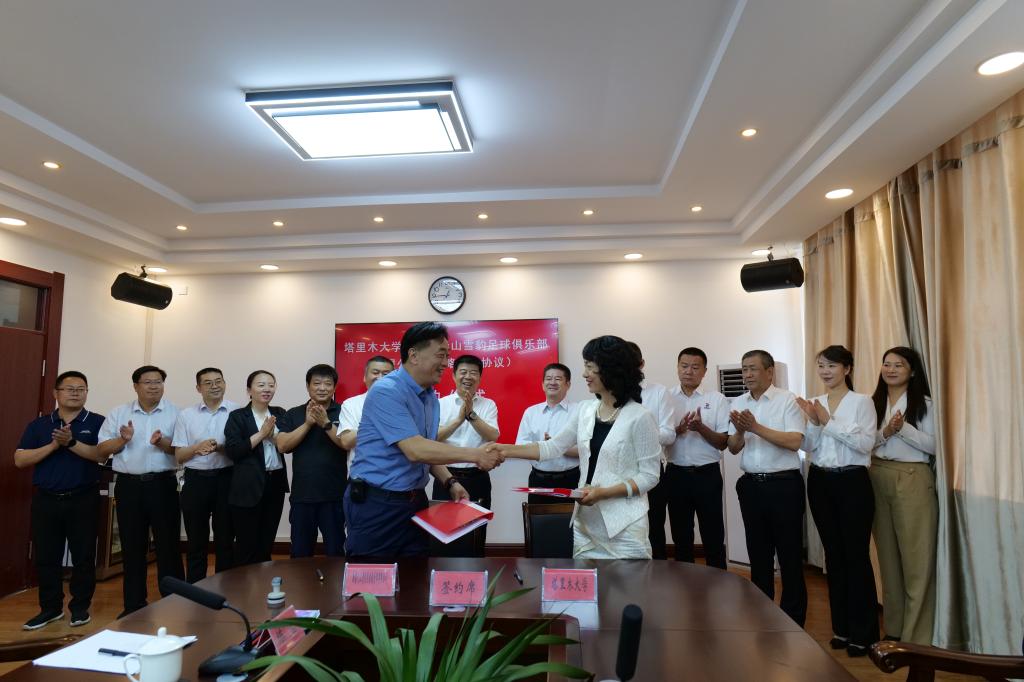 张爱萍、王志坚代表双方签订了合作协议。君泰集团(天山雪豹足球俱乐部)向学校赠送了球衣。