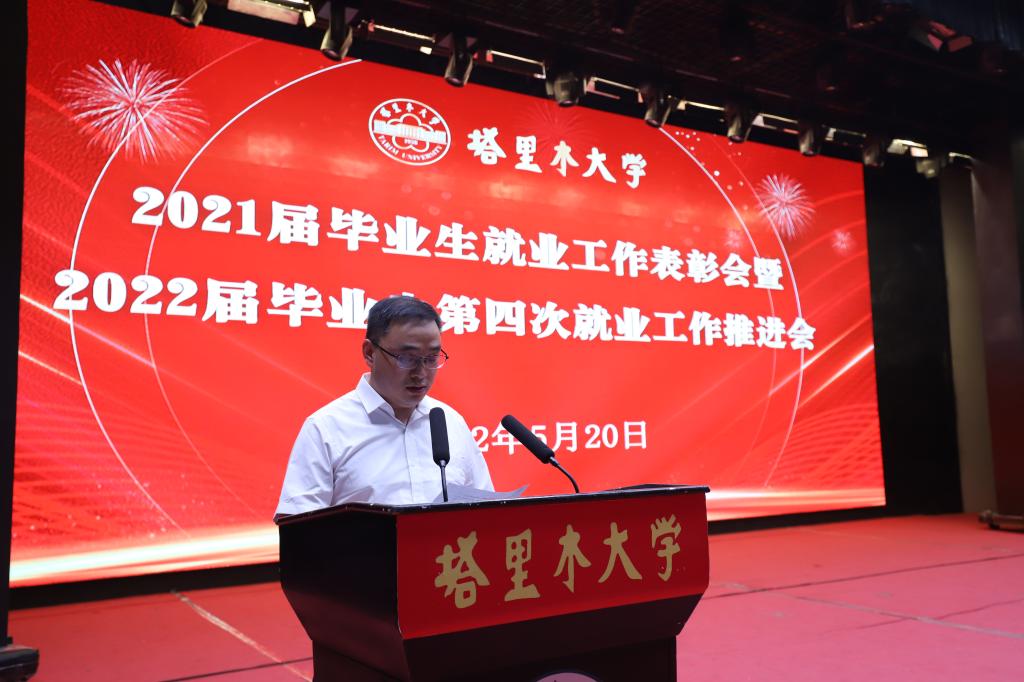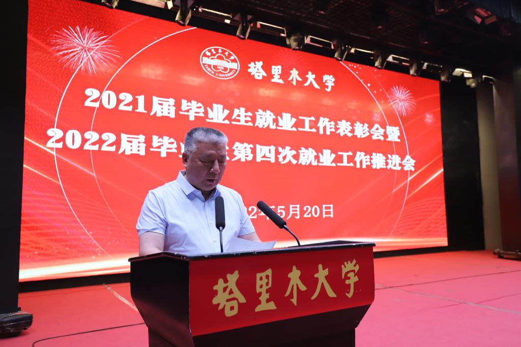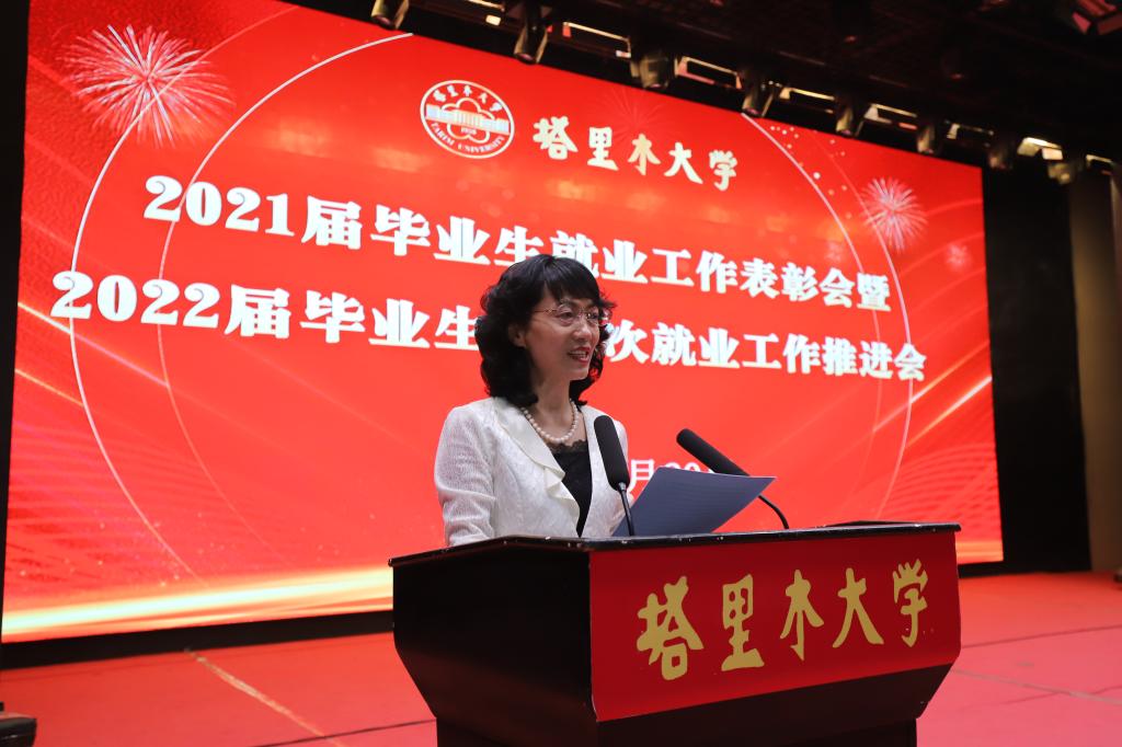 赵光辉代表学校党委向过去一年为学校毕业生就业工作付出努力、付出心血、取得成绩的各级干部、辅导员、班主任和广大教师表示衷心的感谢。他指出,当前,疫情防控形势复杂多变,稳就业是对学校立德树人根本任务成效的一次检验,也是对学校的一次大考。一要提高认识,认清形势,增强做好毕业生就业创业工作的责任感和紧迫感。站在讲政治的高度“稳就业”,站在促民生的全局“稳就业”,站在学校事业发展的大局“稳就业”。二要明确目标,突出重点,多措并举,积极推进毕业生更高质量和更充分就业。用好政策、抓住机遇,多措并举、精准指导,访企拓岗,邀企纳贤。三要认清形势,转变观念,提升能力,积极推进全员就业。优化指导服务、提升就业能力,用胡杨精神激励毕业生扎根边疆。他强调,各有关部门各学院要勇于担当、狠抓落实,扛起肩负的职责和使命,进一步落实就业工作‘一把手工程’,优化创新供需对接方式,加强就业信息高效服务,拓宽校园招聘主渠道,帮助毕业生解决实际困难,以时不我待的紧迫感和责任感,全力以赴确保2022届毕业生毕业去向落实率达到既定目标,以优异的成绩迎接党的二十大的胜利召开。”