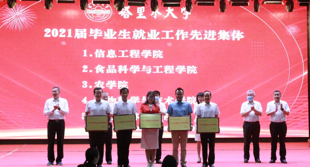 单洪山宣读了《关于表彰2021年毕业生就业工作先进集体和先进个人的决定》。