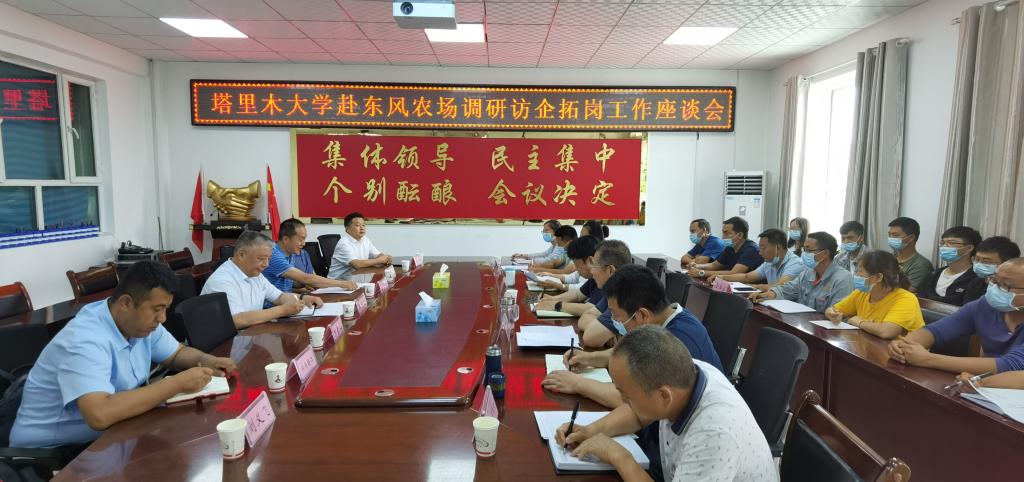 6月8日,单洪山一行到第三师图木舒克市东风农场调研。与东风农场党委书记、政委李俊和10余名校友进行座谈。随后,走访了新疆金盛新型建材有限公司、新疆钦元牧业有限责任公司等企业。