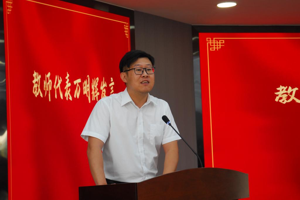 教师代表万明辉发言说:“希望你们在未来的行医道路上,以大爱立德,砥砺一名医者的品格,始终牢记学医从医的职责和使命,为实现医学梦而不懈奋斗。”