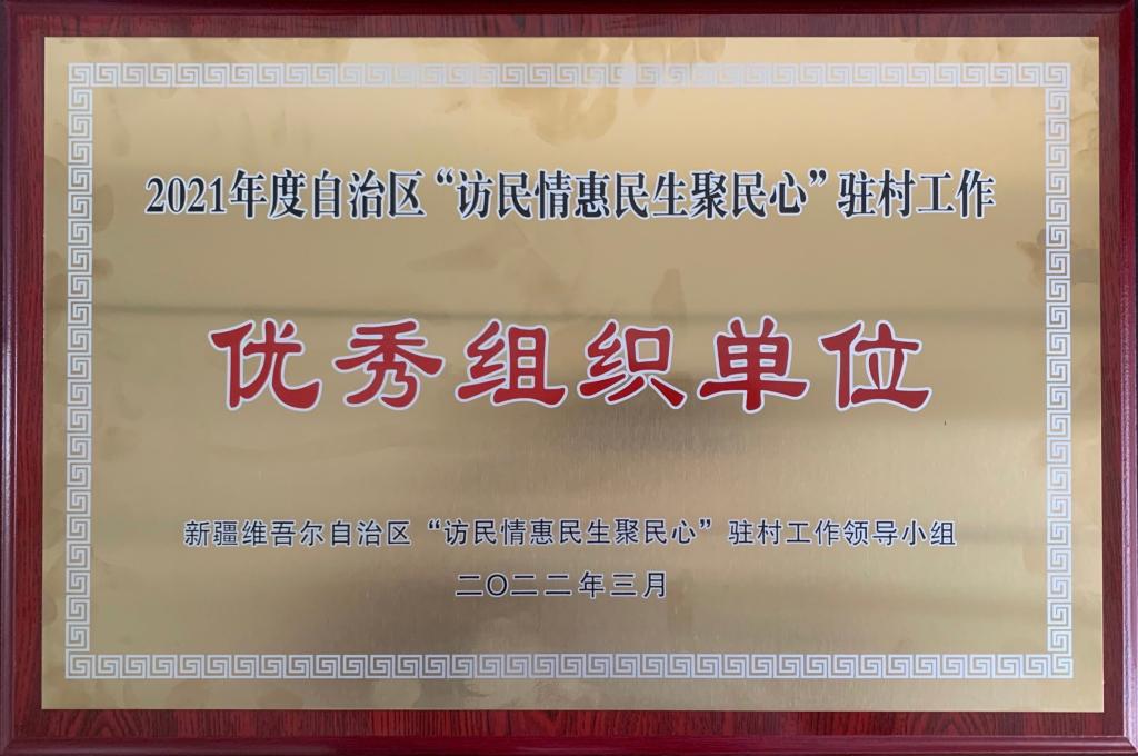 近日,从自治区“访民情惠民生聚民心”驻连(村)工作领导小组关于表彰2021年度驻连(村)工作先进集体、先进个人和优秀组织单位的决定获悉。我校荣获2021年度“自治区‘访惠聚’驻村工作优秀组织单位”称号。