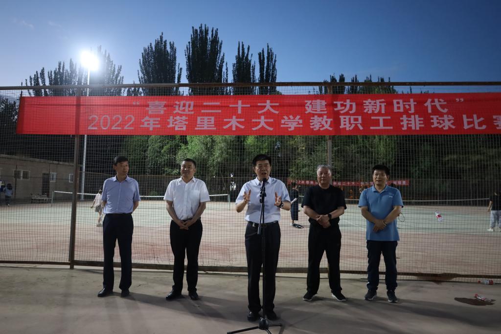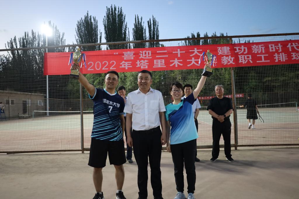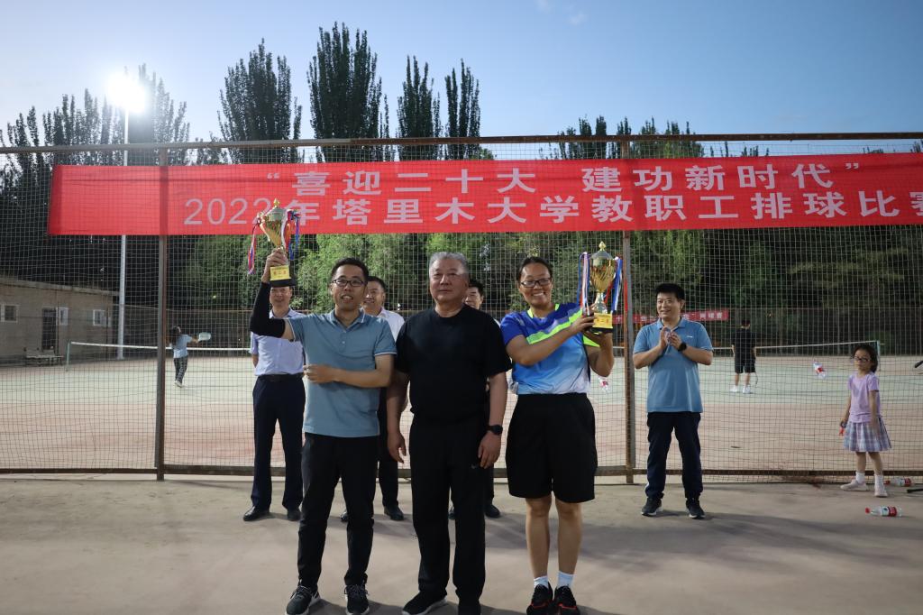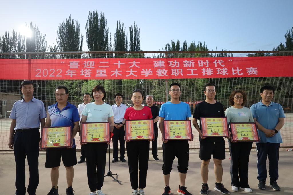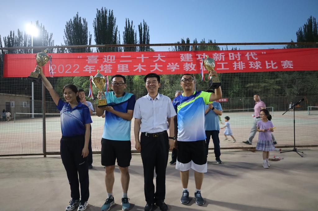 赵光辉对获奖参赛队表示祝贺,向全体裁判员和工作人员的辛勤付出表示感谢。他指出,此次教职工排球比赛发挥了提振精气神、提升正能量、提高凝聚力的重要作用,达到了预期目的,收到了良好的效果,对丰富广大教职工文化生活、倡导健康工作生活理念、营造团结向上的校园文化氛围具有重要意义。希望广大教职工积极参加全民健身运动,践行“每天锻炼一小时,健康工作五十年,幸福生活一辈子”的健康理念,把团结协作和奋力拼搏的体育精神带到工作中,凝心聚力、锐意进取,践行胡杨精神和兵团精神,以实际行动为推进兵团特点、南疆特色高水平大学建设作出新的更大贡献,以优异成绩迎接党的二十大胜利召开。