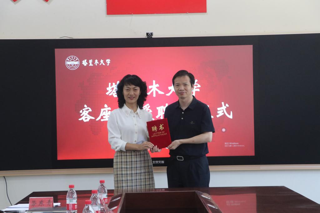 仪式上,张爱萍为李肯立教授颁发了客座教授聘书,希望李肯立教授能将自己带的科研队伍、科学研究和科研成果,与南疆社会发展相结合,与塔大在人才引进、信息技术、智慧农业、遥感监测等方面开展交流合作,实现互惠互利、合作双赢。