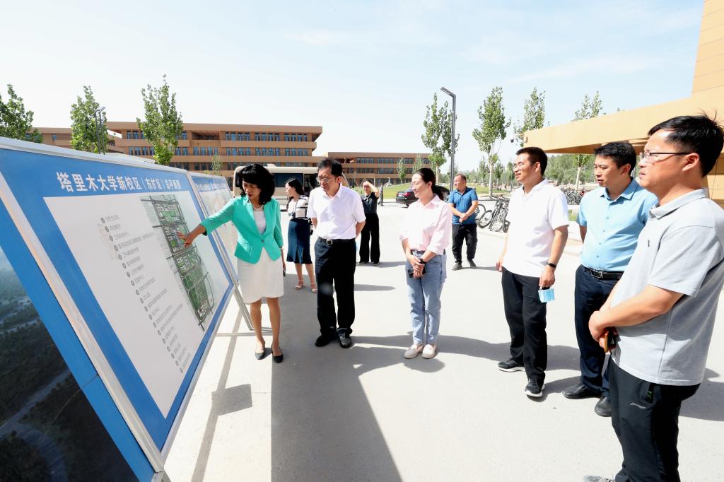 邹学校院士在张爱萍、石长青等领导陪同下,先后来到综合教学楼、新时代广场、红色文化广场、校史馆、塔里木盆地生物资源保护利用省部共建国家重点实验室培育基地、新校区(东扩区)等处进行考察调研。