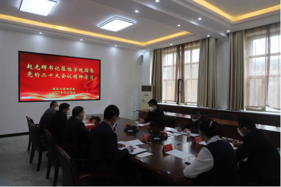2022年10月19日下午,党委书记赵光辉深入经济与管理学院指导督促学习党的二十大报告。