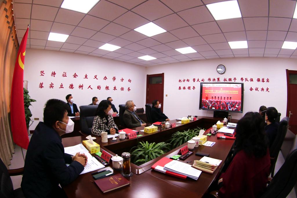 2022年10月23日上午,校领导在行政楼308会议室集中收看见面会实况直播。