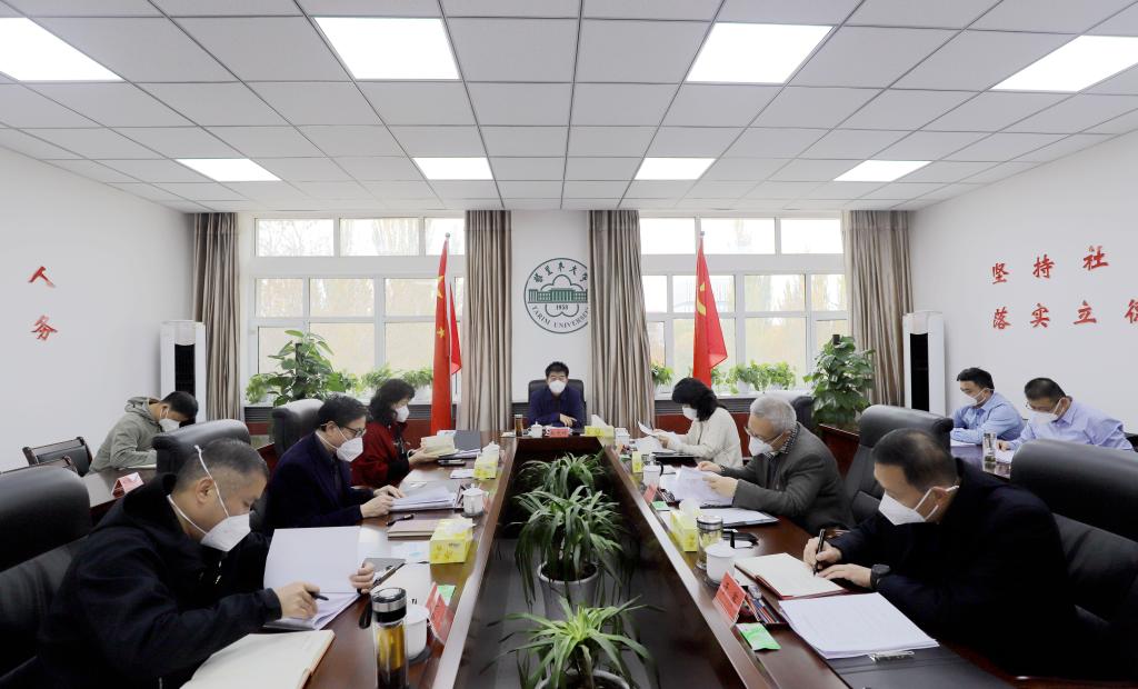 10月24日上午,学校党委召开常委会,传达学习习近平总书记在中国共产党第二十届中央政治局常委同中外记者见面会上的重要讲话精神,以及自治区党委、兵团党委近期关于抓好疫情防控的部署要求。党委书记赵光辉主持并讲话。党委副书记、校长张爱萍,副校长张利莉,党委常委、副校长曲义勇、赵峰华、于军、石长青出席。各部门主要负责同志列席。会议在行政楼308会议室召开。