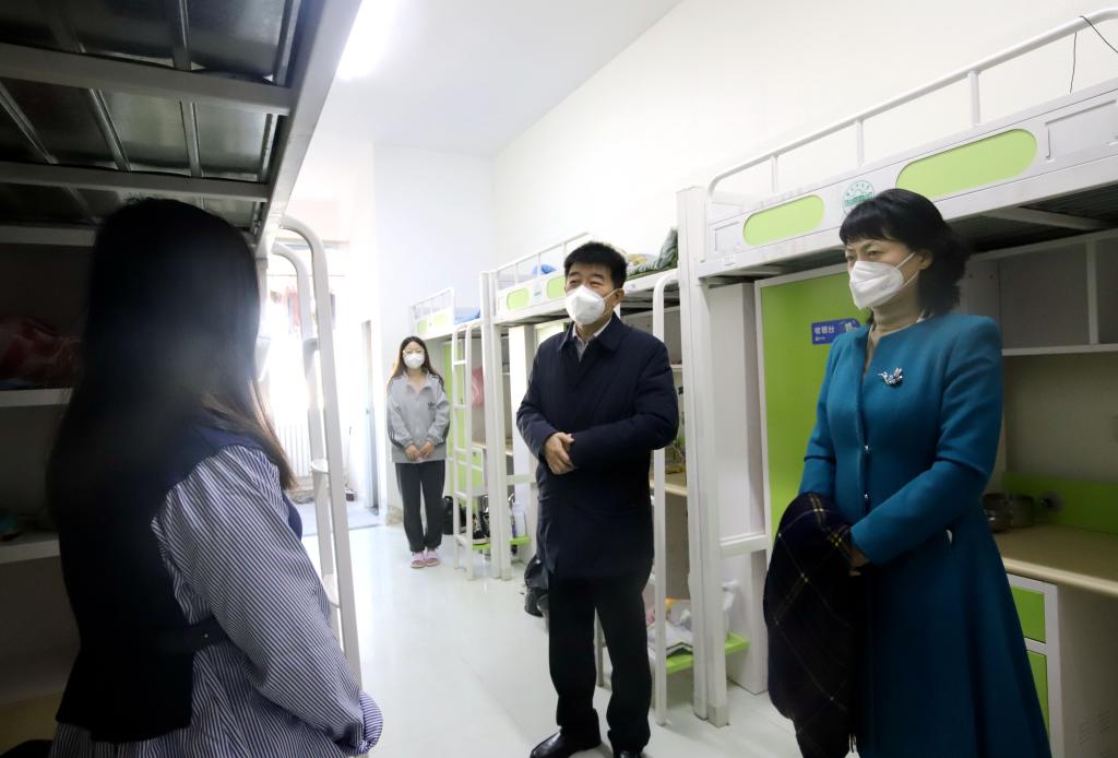 11月11日上午,党委书记赵光辉,党委副书记、校长张爱萍深入学生公寓各宿舍看望慰问学生。相关部门主要负责同志陪同。