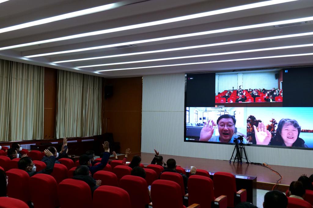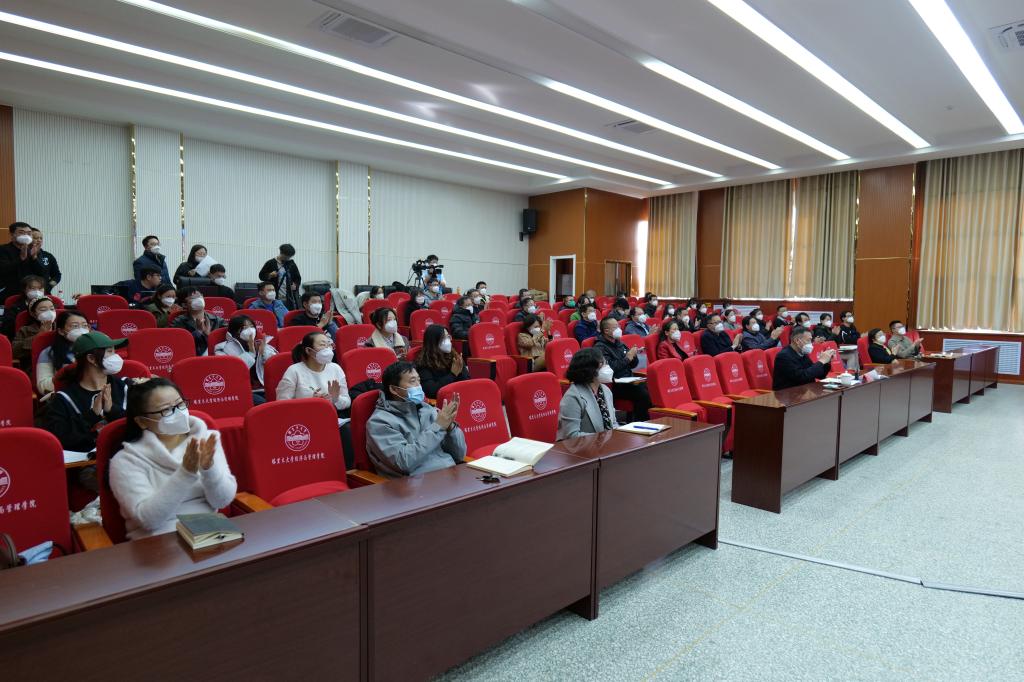 副校长张利莉出席会议,党委常委、副校长于军主持会议。报告会以线上线下方式进行,主会场设在新文科楼504会议室,各学院、各党支部设立分会场。