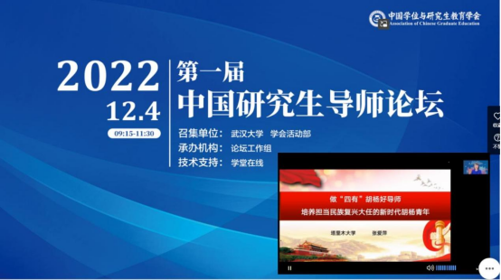 12月4日,首届中国学位与研究生教育大会暨中国研究生教育长江论坛的8个分论坛在线上举行。大会由中国学位与研究生教育学会和武汉人民政府共同主办,主题是“为党育人、为国育才,全面提高人才自主培养质量,着力造就拔尖创新人才,聚天下英才而用之”,是一场学位与研究生教育领域的思想盛宴。我校党委副书记、校长张爱萍教授应邀参加大会论坛之“第一届中国研究生导师论坛”并作主题报告。我校全体研究生导师线上参加。