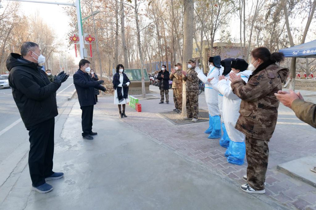 校领导先后来到保卫部、派出所、第三食堂、学校北门,向坚守岗位的一线工作人员表示衷心感谢和崇高敬意,向他们致以新年的问候和美好祝福。仔细询问值班备勤情况,深入了解大家的现实需要,充分肯定了他们在疫情防控、维护校园稳定、后勤保障等工作中的辛勤付出和取得成绩。赵光辉希望大家继续发扬不畏艰辛、勇毅坚守的工作作风,践行胡杨精神,认真值班值守,保障学校安全稳定大局,为全校师生度过欢乐、祥和、平安的元旦假期保驾护航。在新一年的第一天以饱满的精神状态和昂扬的奋斗姿态展现新面貌、新气象,皆得所愿、万事胜意。
