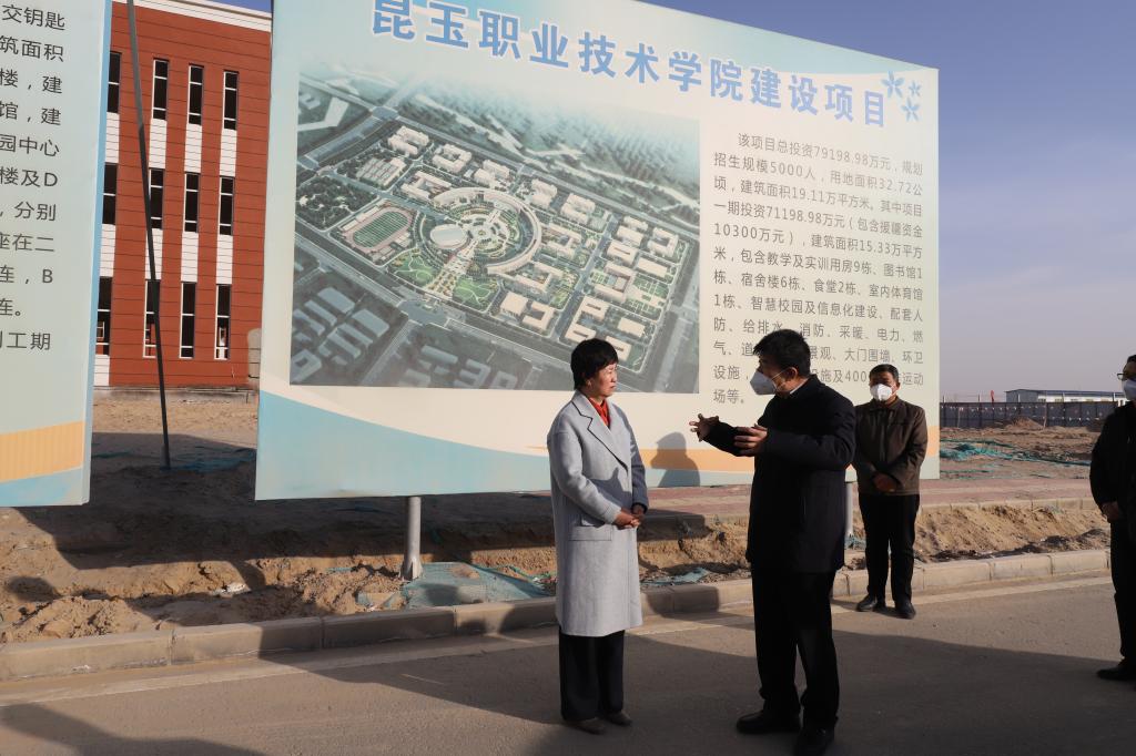 期间,赵光辉在师市领导陪同下,实地考察了昆玉职业技术学院校区规划建设情况。