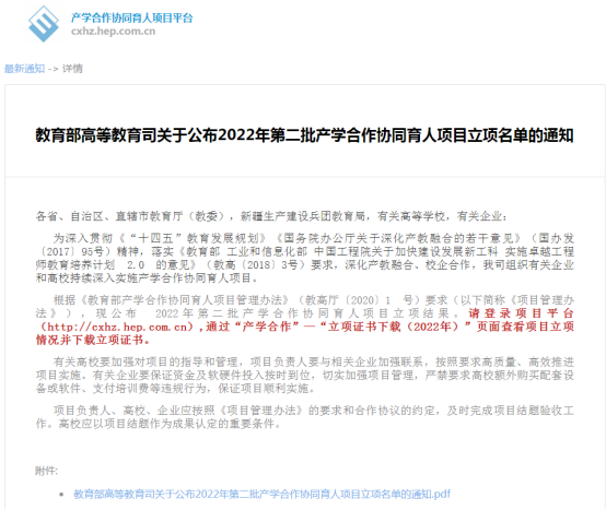 在2022年11月教育部公布的2022年第一批产学合作协同育人项目中,我校已获批12项。2022年学校共计获批立项18项,涵盖了教学内容和课程体系改革、师资培训、实践条件和实践基地建设以及新工科、新医科、新农科、新文科建设等方面。