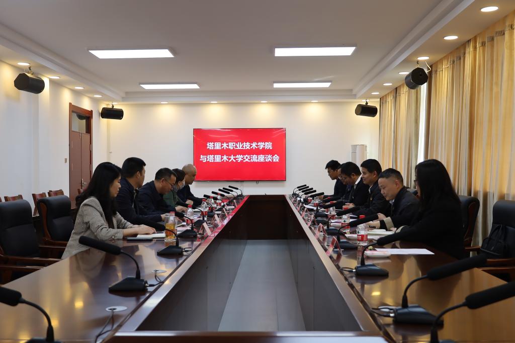 4月3日下午,塔里木职业技术学院党委副书记、院长周志国一行来校访问,与我校党委副书记、校长张爱萍等领导座谈交流。两校相关部门领导参加座谈。座谈会由谷建杰主持,在行政楼十三号会议室召开。