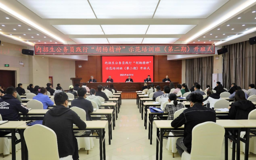 4月9日上午,伴随着雄壮的奏唱国歌声,2023年春季内招公务员践行胡杨精神培训班在我校开班。党委常委、副校长于军出席并讲话。党委组织部、胡杨学院、马克思主义学院(法学院)领导,以及来自南疆各师团的50名学员参加。开班式由党委组织部常务副部长张伟信主持,在胡杨干部培训中心二楼报告厅举行。