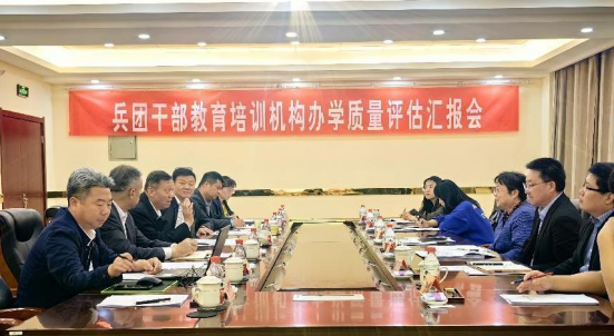 4月18日上午,兵团干部教育培训办学质量第七评估组组长、兵团党委党校(行政学院)一级巡视员吴珍一行来校开展干部培训办学质量评估并召开汇报会。我校党委常委、副校长于军出席。党委组织部党务副部长、机关党委书记张伟信主持会议。胡杨学院主要负责同志、相关部门领导参加,在胡杨干部培训中心三楼会议室召开。