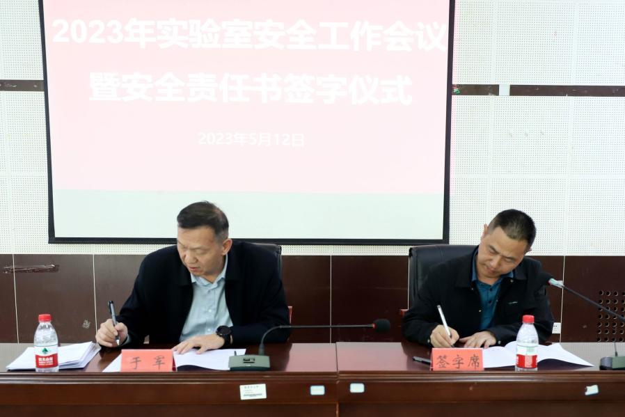 5月12日下午,学校召开2023年实验室安全工作会议暨安全责任书签字仪式,党委常委、副校长于军出席并讲话。各部门、学院有关负责同志及实验中心主任参加会议。会议由实验室与设备管理处处长马明主持,在文科楼B座117会议室召开。