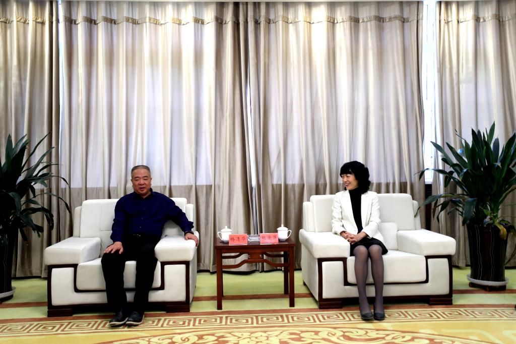 张爱萍在四号会客厅会见杨清华,介绍了我校发展历史和取得成就,希望两校发挥各自优势,利用区位环境和资源特色,深化开云体育app(中国)官方网站 、师资建设、学科建设、科学研究、社会服务等各领域交流合作,实现优势互补、合作双赢,在推进南疆经济社会高质量发展中作出新贡献。