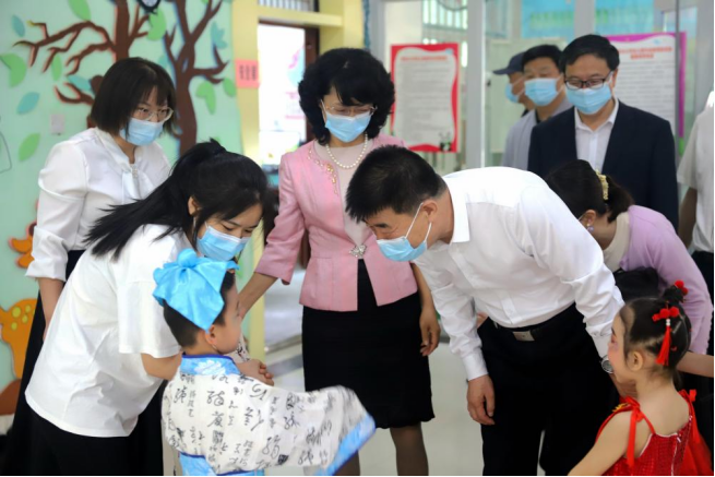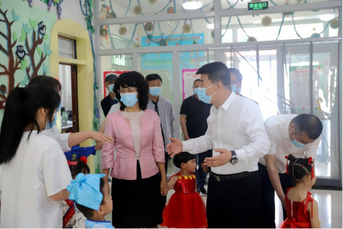 在“六一”国际儿童节之际,6月1日上午,党委书记赵光辉,党委副书记、校长张爱萍,党委常委、副校长赵峰华、石长青分成两组,来到学校小胡杨幼儿园,看望慰问幼儿园小朋友和教职工,向小朋友们祝贺“六一”国际儿童节快乐。