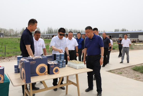 仪式后,赵光辉一行在王鲁军等领导陪同下参观了驴养殖基地、冰鲜驴奶和冻干驴奶粉生产情况,与合作社负责人、技术专家就合作社养殖规模、产奶量、饲养管理方式、产品定位开发等进行了交流。赵光辉还来到库车市现代农业科创中心实地调研。
