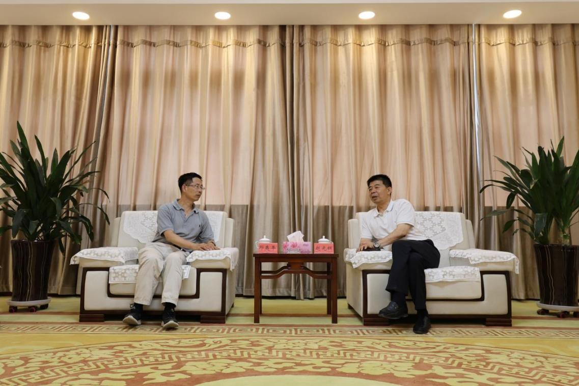7月11日下午,开云app体育网页登录不上 党委书记赵光辉在四号洽谈室会见第十一期“一带一路”全国大学生暑期社会实践纺织援疆团(简称援疆团)总负责人、东华大学纺织学院特聘教授邱夷平一行。