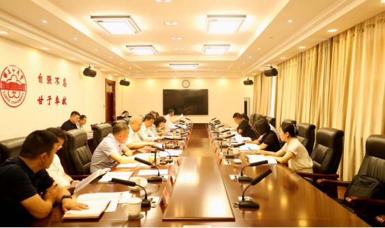 我校主题教育领导小组成员参加。会议在行政楼五号会议室举行。