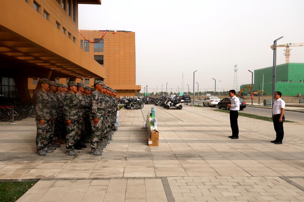 校领导对全体承训教官的辛勤付出表示感谢,对全体参训学生不怕累、不怕苦的顽强意志和高昂斗志给予充分肯定。希望全体参训同学践行胡杨精神和兵团精神,遵守军训纪律,磨砺意志品质,锤炼过硬本领,以饱满的热情、昂扬的姿态,交上一份圆满的军训答卷。