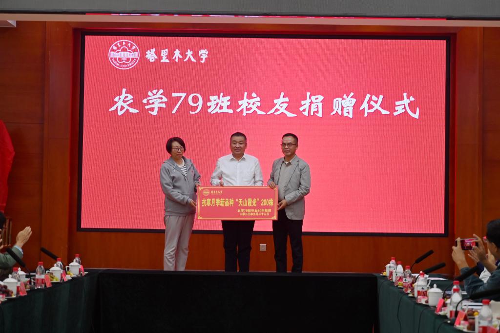 回首再忆母校恩,畅言叙事师生情。会上,校领导石长青欢迎各位校友重回母校,介绍了学校发展变化。希望校友们继续关注母校发展,助力学校建设兵团特点、南疆特色一流大学,为扎实推进中国式现代化新疆实践、兵团实践,作出塔大新的更大贡献。