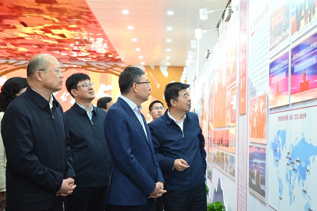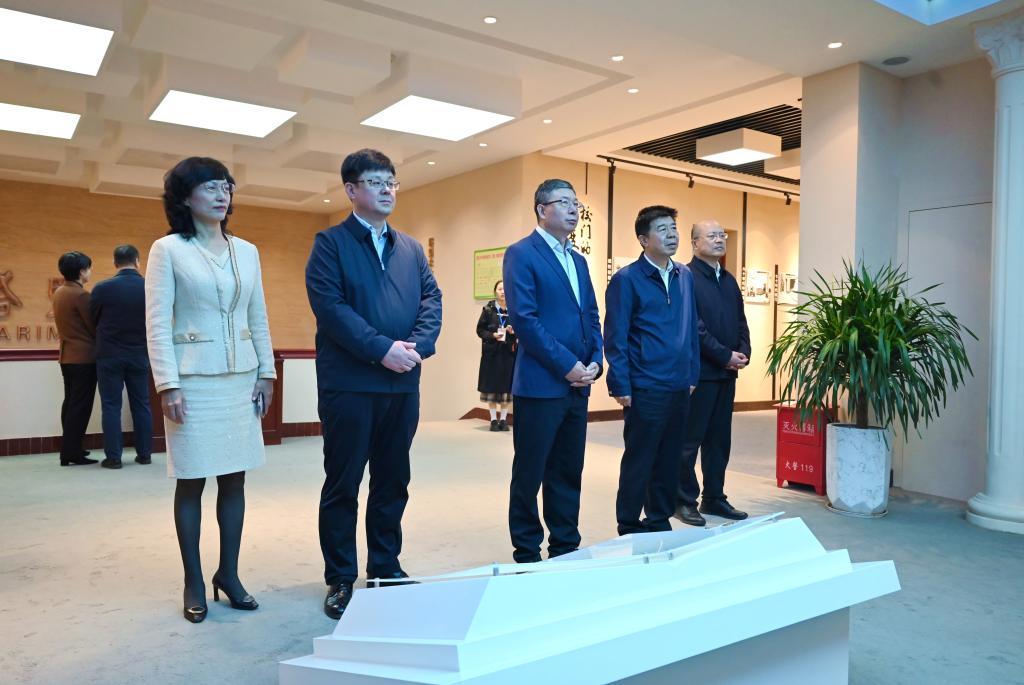 荆德刚一行在校领导陪同下参观了综合教学楼、新时代广场、红色文化广场、校史馆、“我们这5年”主题展览馆、新校区(东扩区)等建设情况。