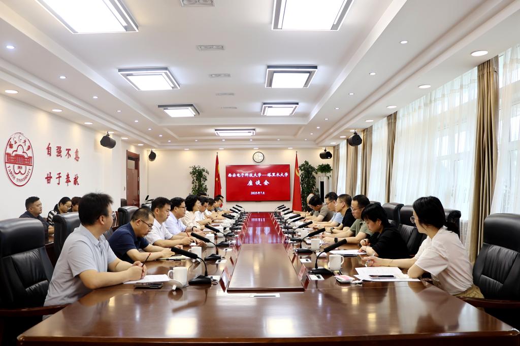 西安电子科技大学校领导毛立强出席。两校相关部门、学院领导参加。会议在行政楼五号会议室召开。