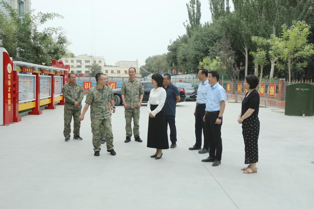 校领导分别来到兵团第一师人武部、阿拉尔市人武部、武警某队、某营等单位看望慰问官兵,感谢人武部、武警某队对学校军训、国防教育和爱国主义教育的大力支持和帮助。希望军、校深入学习贯彻习近平强军思想,发挥各自优势和资源,进一步深化兵、校融合发展和协同育人,为忠诚履行新时代兵团维稳戍边职责使命、扎实推进中国式现代化南疆实践,作出新的更大贡献。