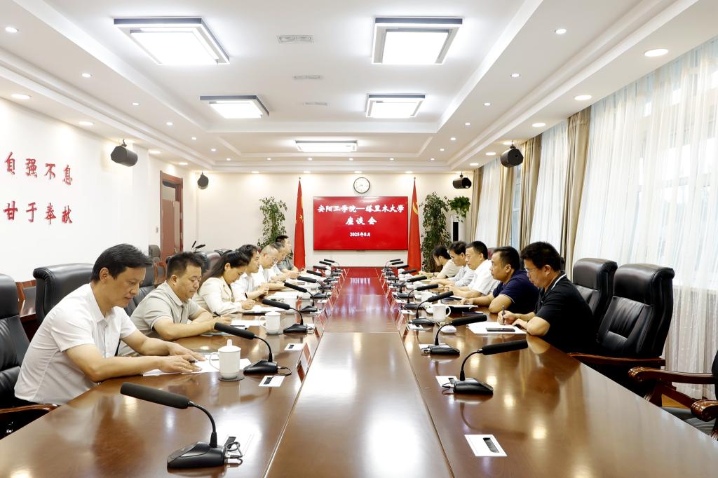 8月25日,安阳工学院党委常委、副校长彭仁海一行来校,与我校党委副书记、校长闫祥林,党委常委、副校长万传星等领导,在行政楼四号洽谈室进行深入交流。