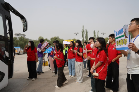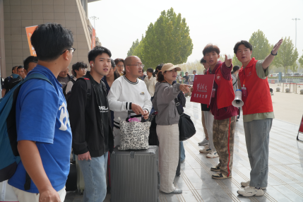 志愿者面带热忱、微笑相迎