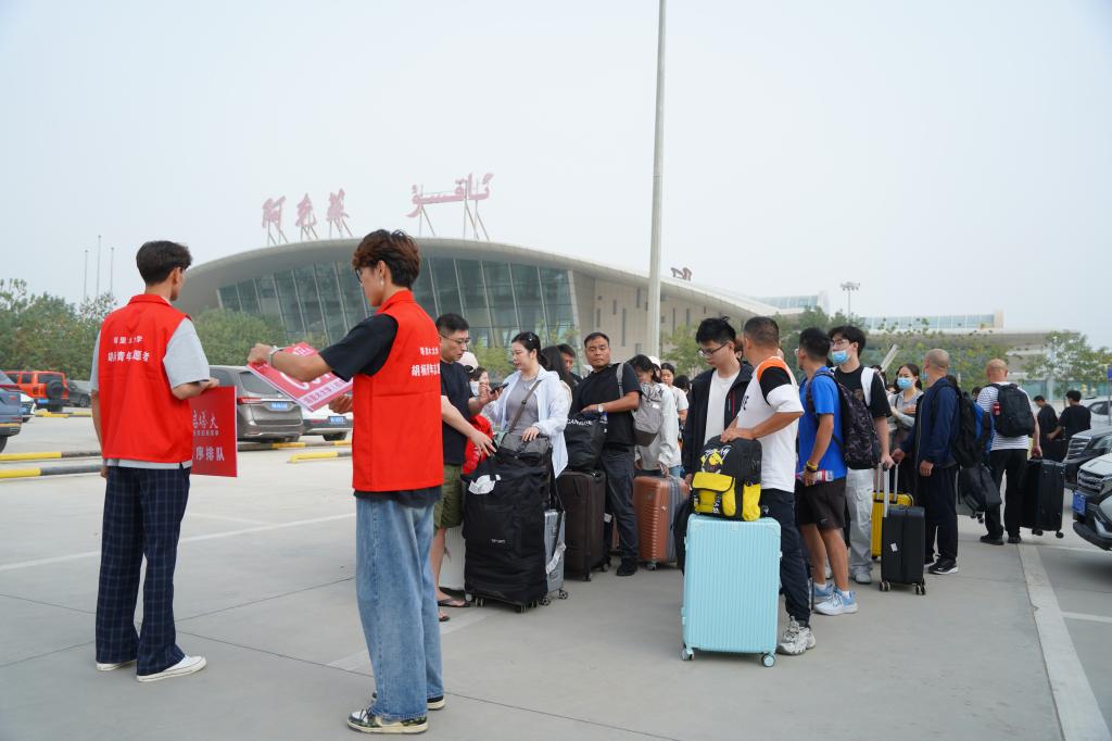 志愿者在车站翘首以盼