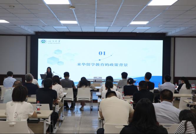 相关部门、学院领导,全体国际留学生导师参加。培训会在胡杨学子综合服务中心401会议室举行。(文/图:热纳汗·阿布力米提)