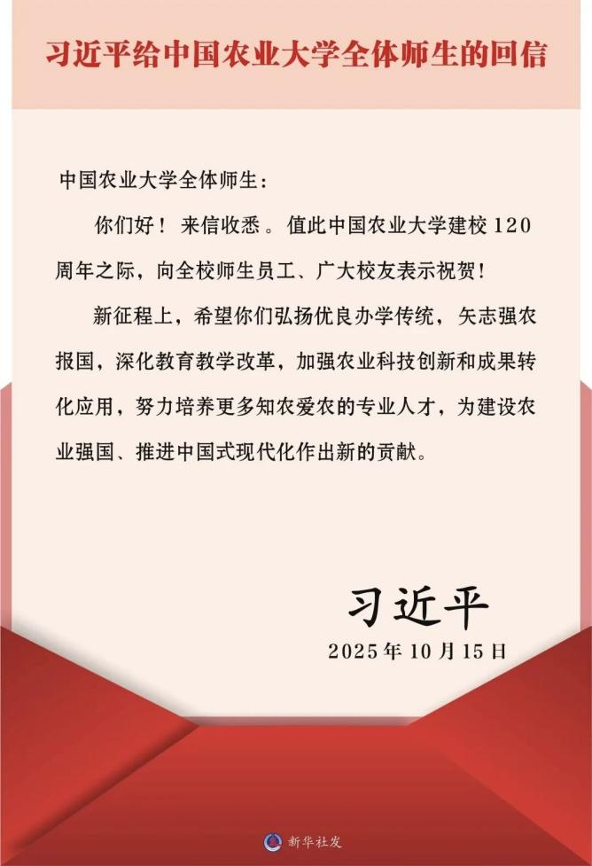 毕业生,中国农业大学动物科学技术学院畜牧专硕2025级王普说,值此中国农业大学120周年校庆盛典,作为一名新中农人,我满怀感恩与崇敬。塔大求学时光,为我筑牢了专业根基。中农优质平台,让我充分展示专业才华。我将永记塔大的启蒙之恩与中农的培育之情,带着塔大的扎实底色与中农的前沿视野,深耕畜牧领域,潜心科学研究,以实际行动为农业科技进步贡献力量。愿两校携手共进,共筑农业强国之梦。