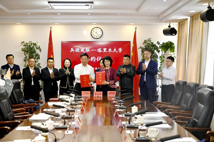 党委书记张爱萍,兵团残联党组成员、副理事长常青,代表双方为兵团残疾人体育训练基地揭牌,并签订了《新疆生产建设兵团残疾人联合会与开云app体育网页登录不上