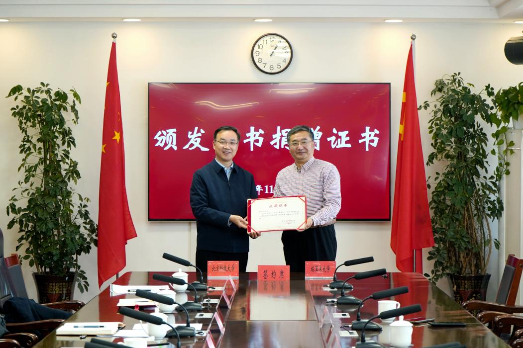 李晓刚为我校捐赠了专业领域图书,闫祥林为李晓刚颁发了图书捐赠证书。