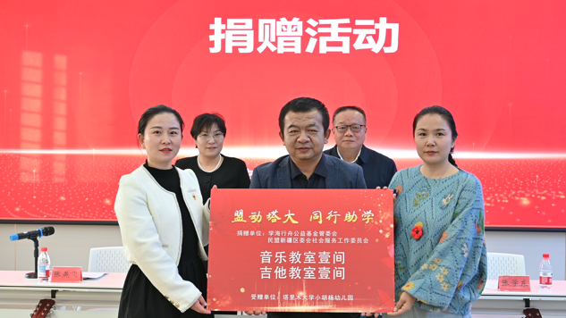 民盟支部代表、保密学院院长张学东为学校幼儿园捐赠音乐教室和吉他教室。