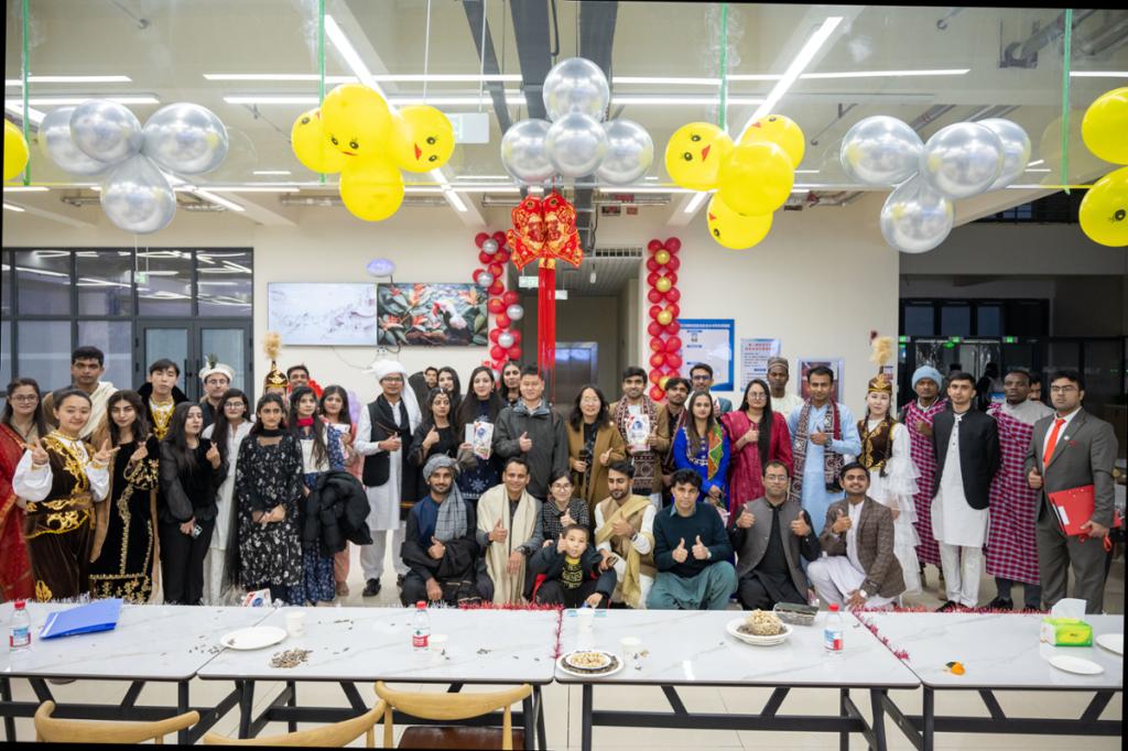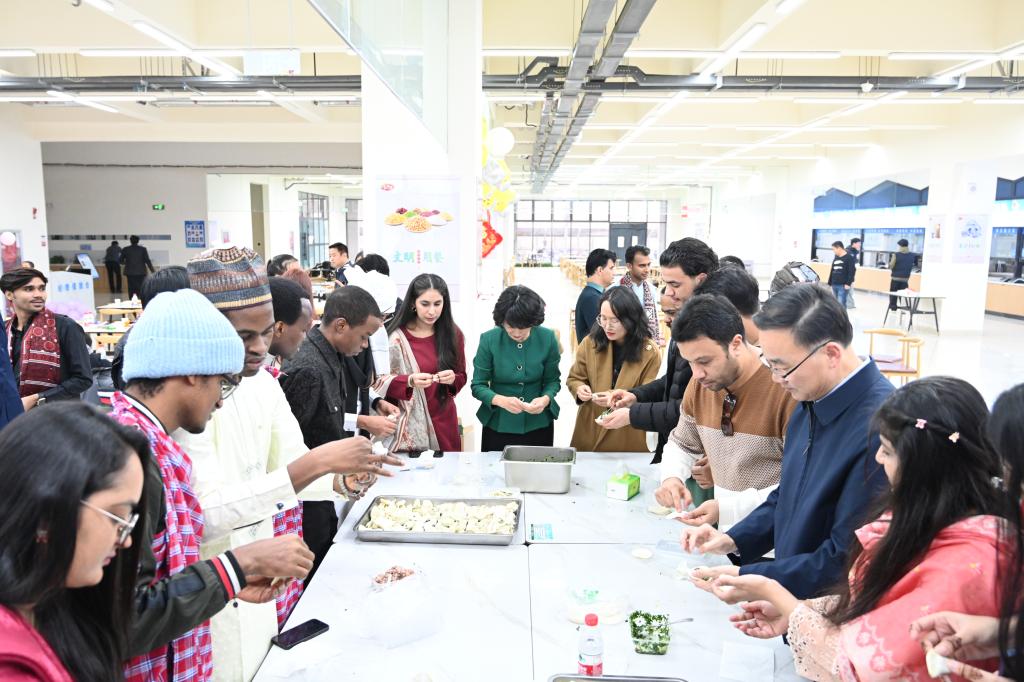 情满塔大,共庆冬至。党委书记张爱萍,校长闫祥林,副校长张宏荣、张立秋,相关部门领导、师生代表,同全体国际学生,在新校区(东扩区)四期海棠苑食堂,一起包饺子、过冬至。