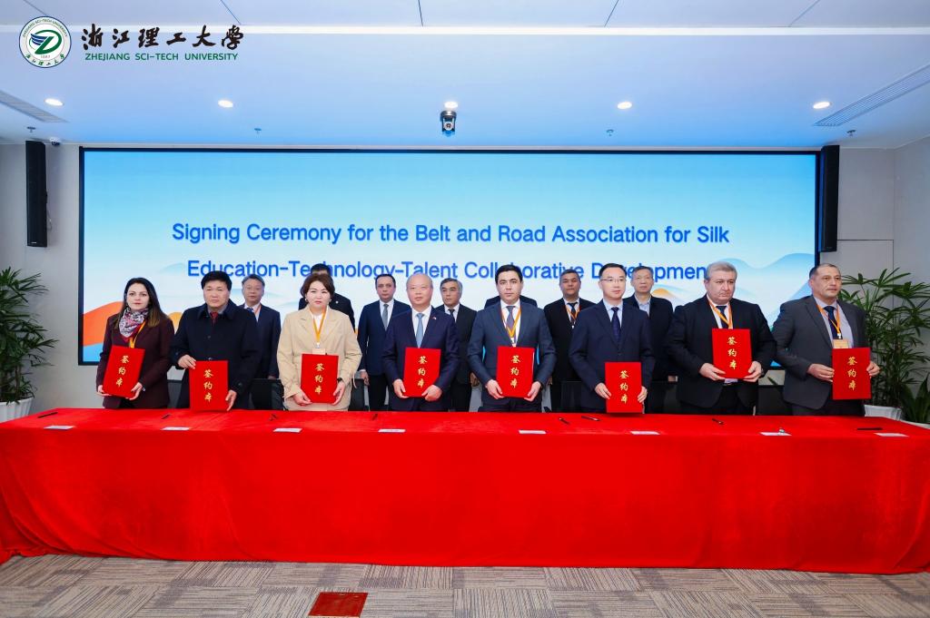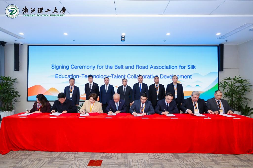 与7所高校、科研单位签订了合作协议。该协议的签订,为我校参与申报建设“古今丝绸‘一带一路’联合实验室”,提升科研平台和科技创新服务能力,提高学科建设发展水平,扩大国际交流合作,实现国家级实验室建设突破,打下了坚实基础。