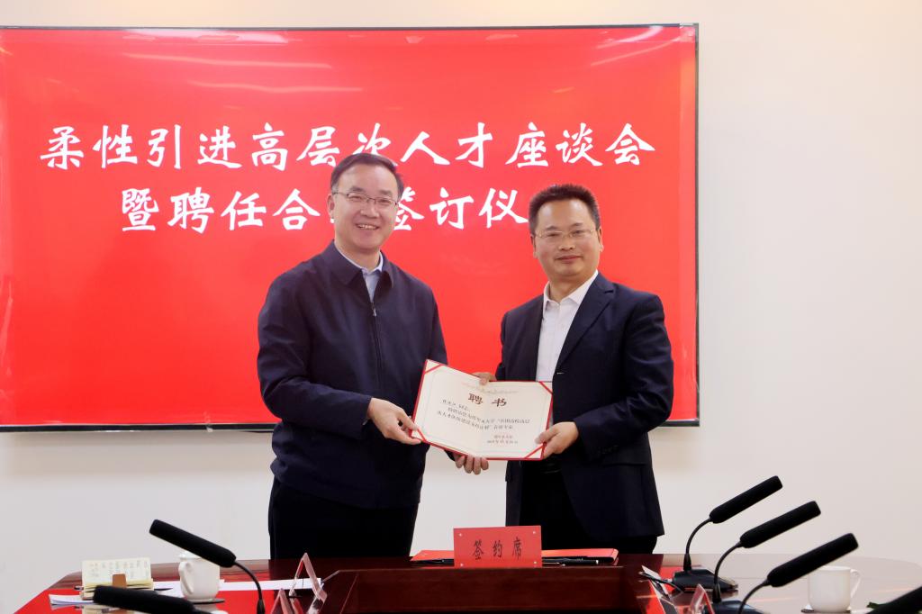 举行柔性引进高层次人才座谈会暨聘任签约仪式,聘任华中农业大学程运江教授为“兵团高校高层次人才队伍建设支持计划”首席专家。党委书记张爱萍,党委副书记、校长闫祥林出席。