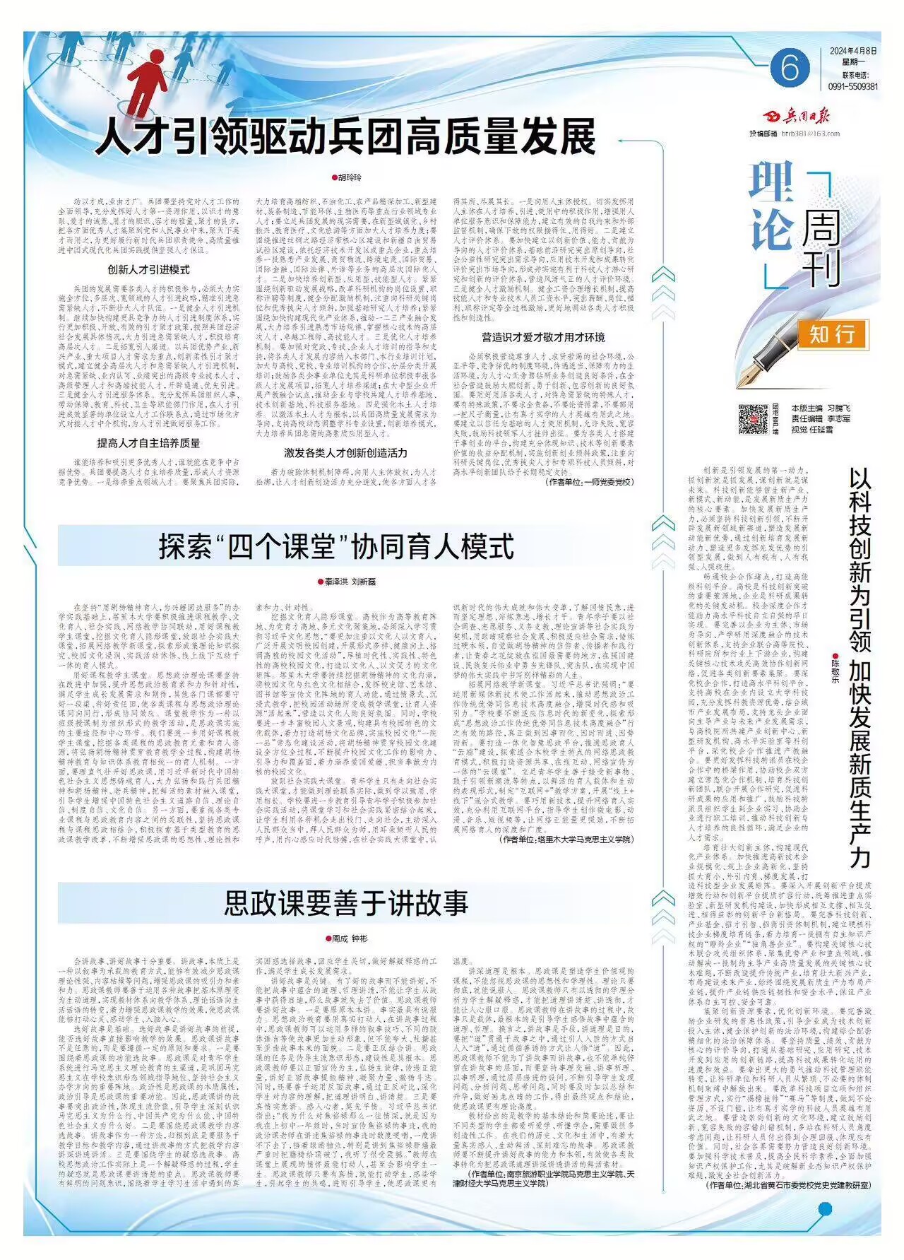 在坚持“用胡杨精神育人,为兴疆固边服务”的办学实践基础上,开云app体育网页登录不上 要积极推进课程教学、文化育人、社会实践、网络教学协同联动,用好课程教学主课堂,挖掘文化育人隐形课堂,放眼社会实践大课堂,拓展网络教学新课堂,探索形成集理论知识探究、校园文化浸润、实践活动体悟、线上线下互动于一体的育人模式。